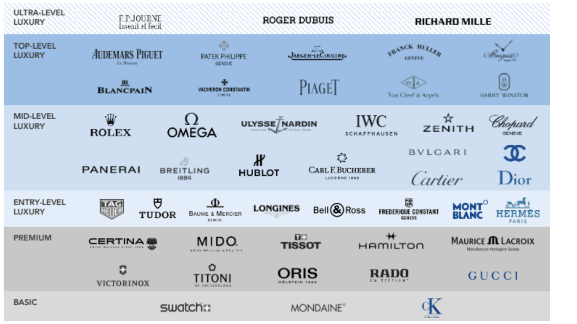 There’s no official global classification system for watch brands. The industry doesn’t run on standardised tiers. So below is a strategic framework, my attempt at categorising brands into 6 categories.